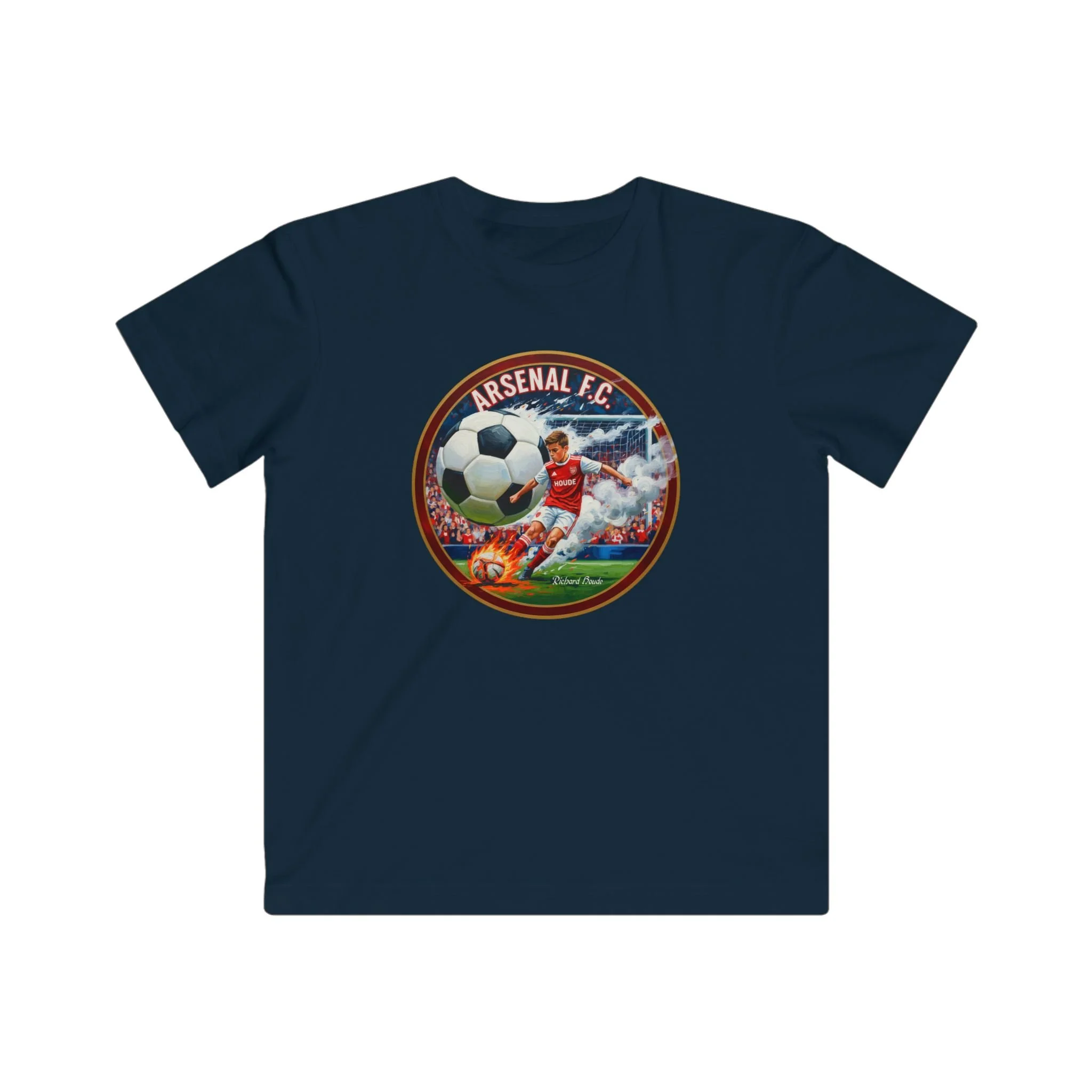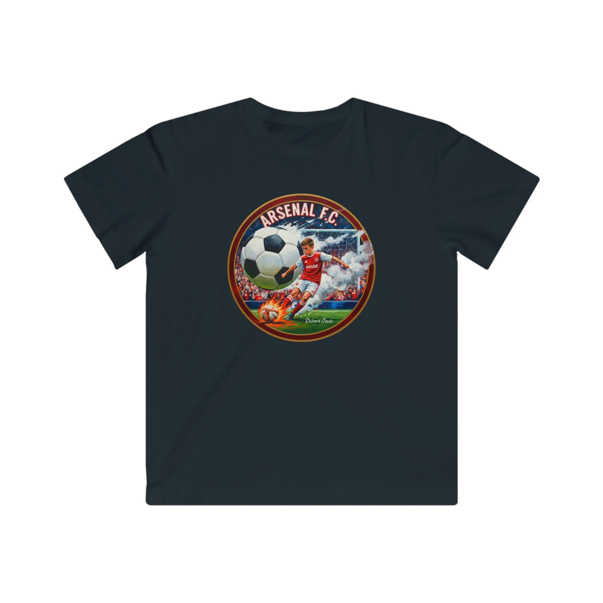 Arsenal FC Kids Soccer Tee — Vintage Player & Ball Graphic