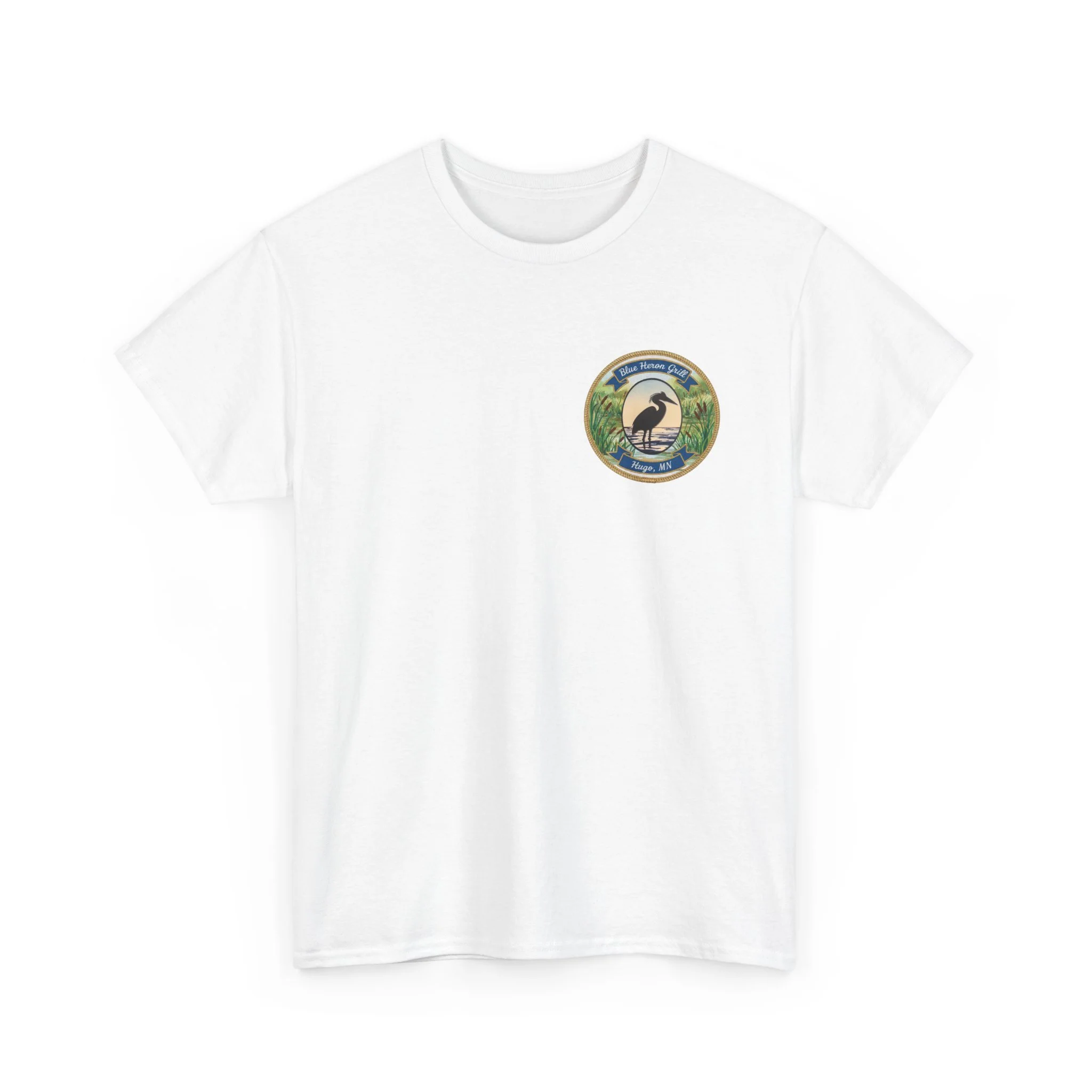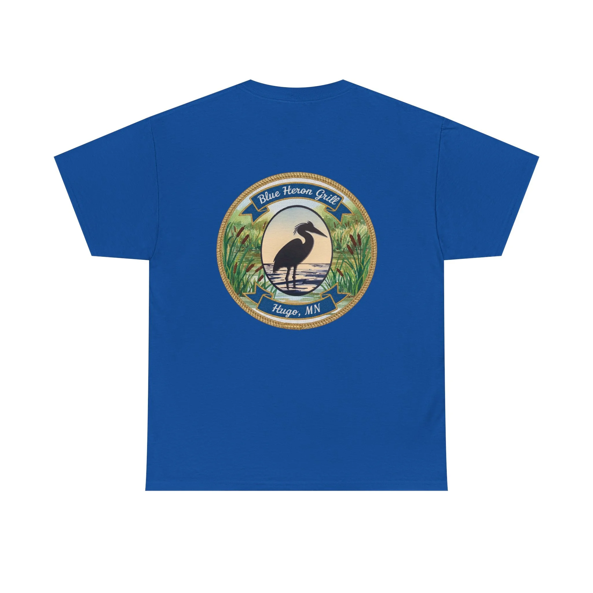 This soft, sturdy tee carries a quiet lakeside story. A detailed heron emblem rests over the heart and blooms larger across the back — reeds, water ripples, and a warm sunset ring evoke summer evenings by the marsh. Wear it for slow mornings with coffee, long drives to birding spots, or evenings on the dock. The cotton body breathes and holds print detail cleanly, so the artwork stays vivid after washes. Its classic crew fit and tear-away label keep the focus on comfort and that lived-in, easy feel you reach for on repeat.